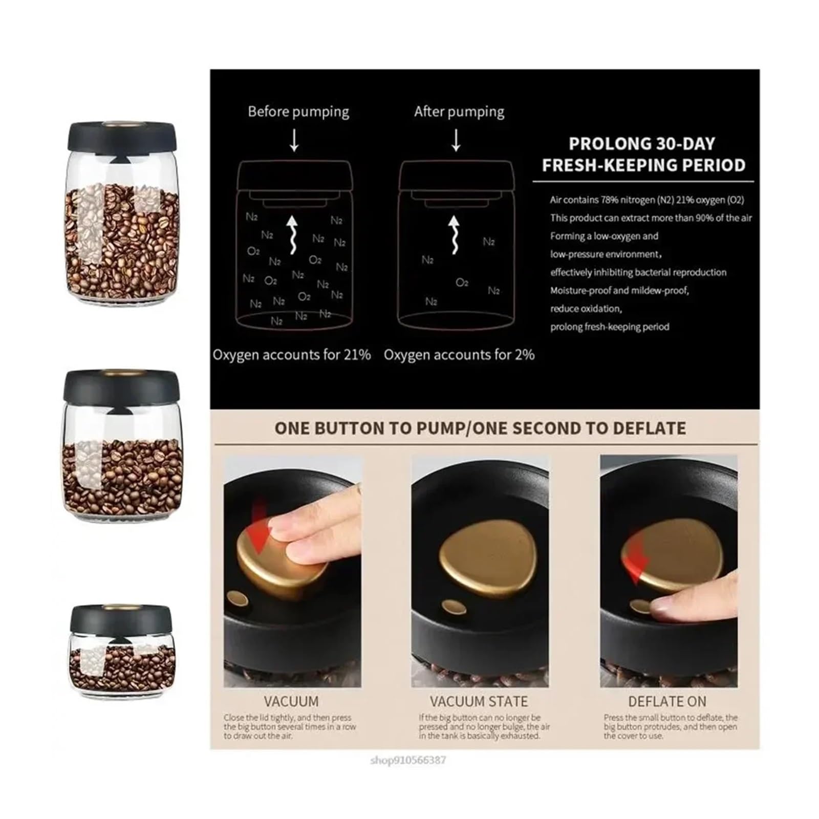 Vacuum with Air Suction Enhances seal, keeping coffee beans and food fresh.