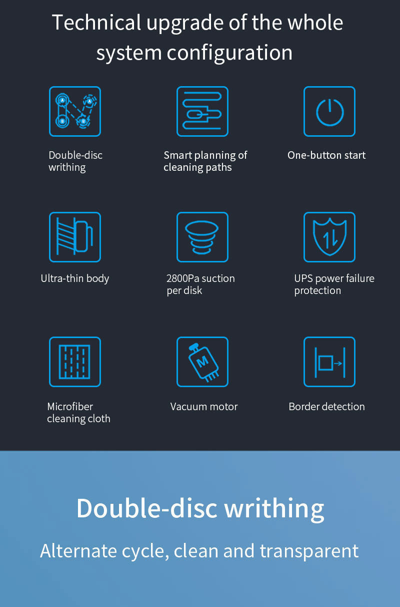 • UPS Power Failure Protection: Safety is a priority. The built-in 500mAh backup battery (Uninterruptible Power System) ensures the robot stays attached to the window for up to 20 minutes in the event of a sudden power outage, sounding an alarm to alert you.
